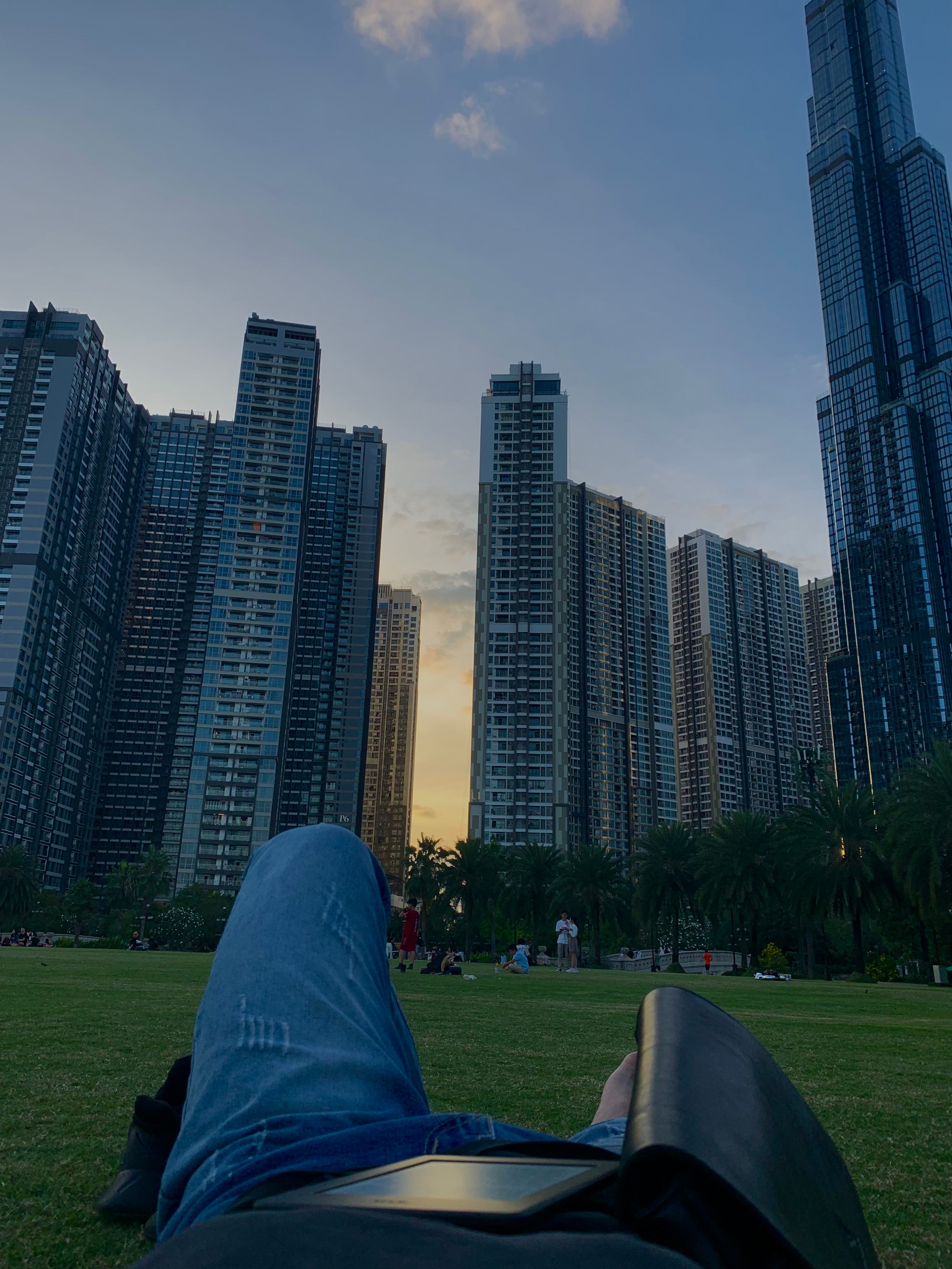 Fast forwarding to today, after relentless trials and errors, I found what peace means to me. The story began when I was assigned to be on the case team of a consulting project of Vinhomes in Vietnam. One day, when I finished a meeting with the client early in the evening, I decided to explore the areas around Vinhomes Central Park to observe as well as hopefully finding some new insights for the clients. I settled down on a lawn located right at the center of the park. The moment when I laid down on grass to watch sunset, to watch people enjoy their life, to listen to birds’ chirping with the evening breeze, I said, “Oh, I'll call this feeling peace.”